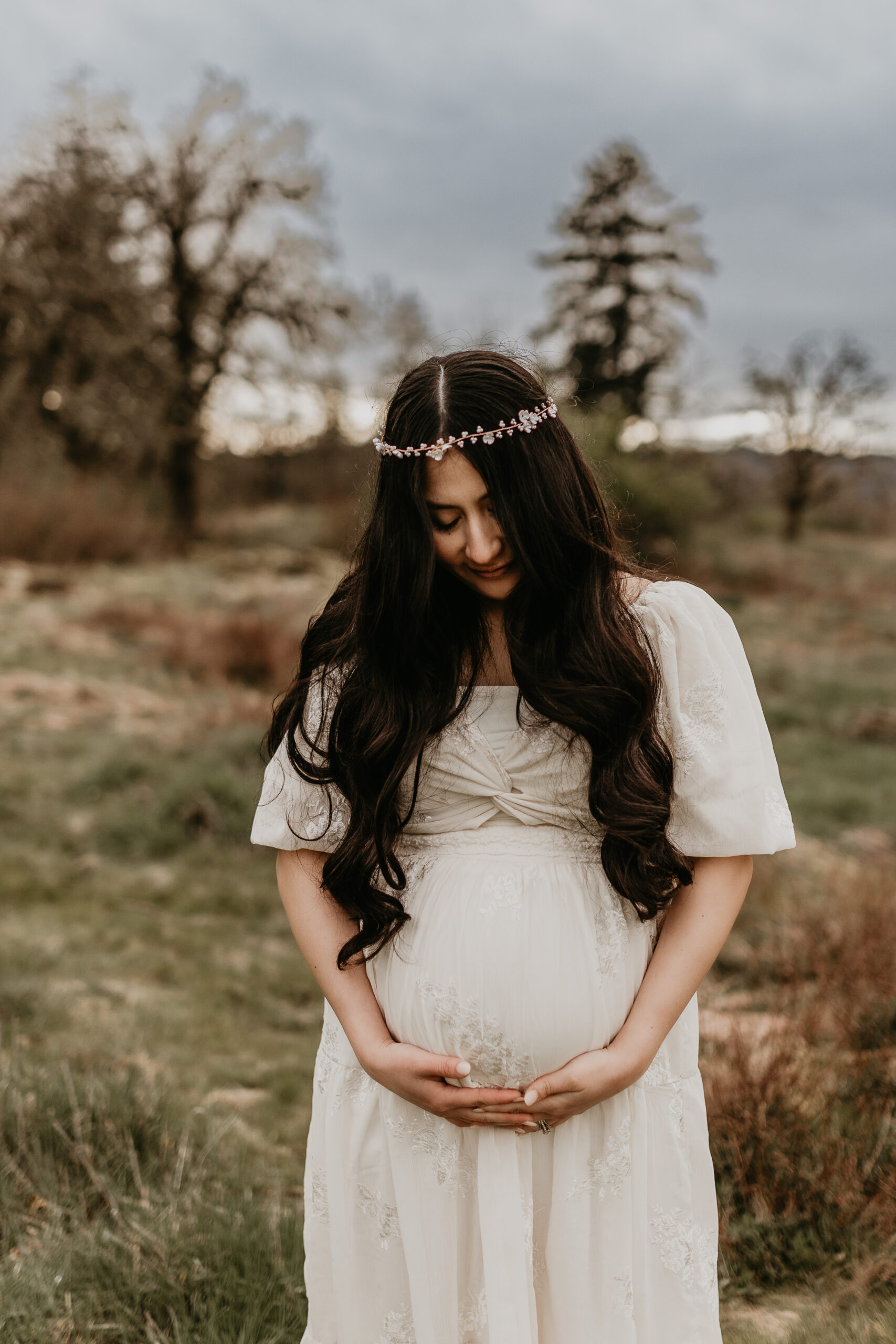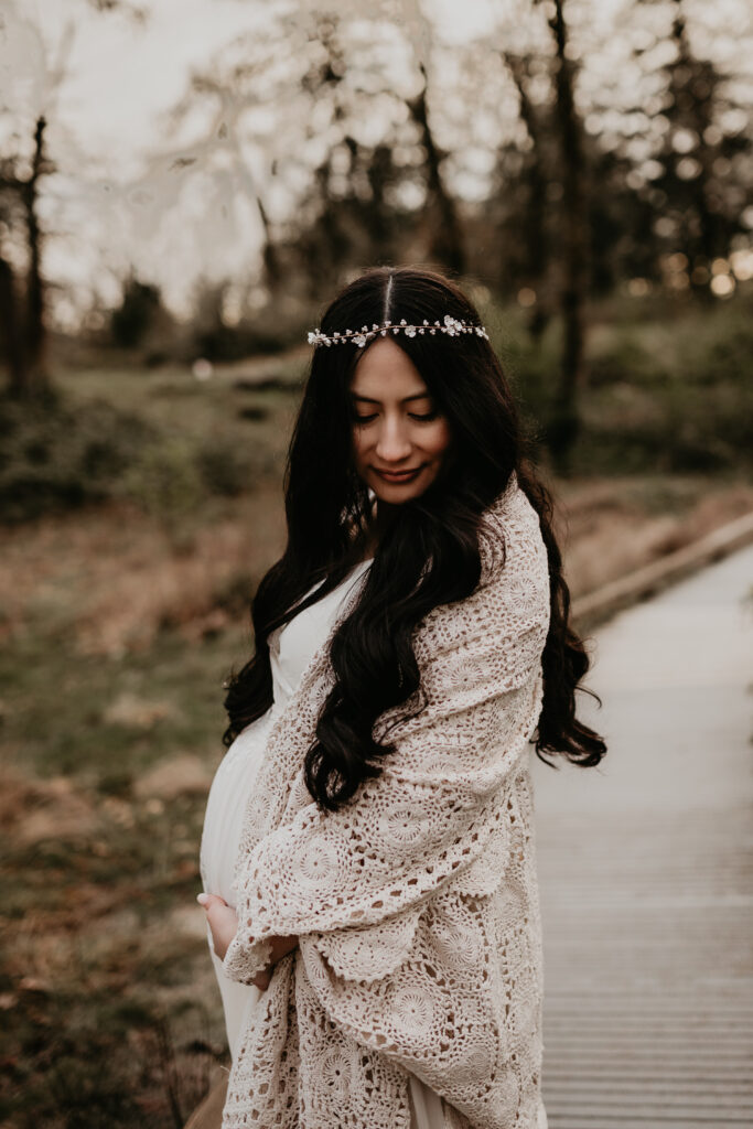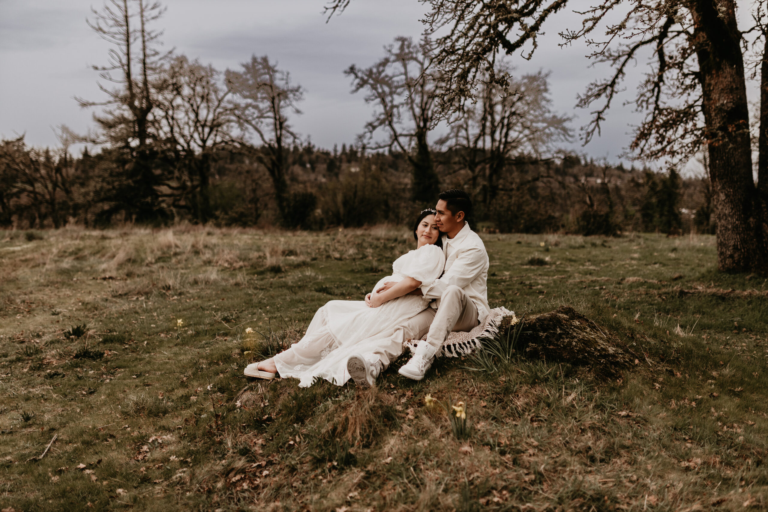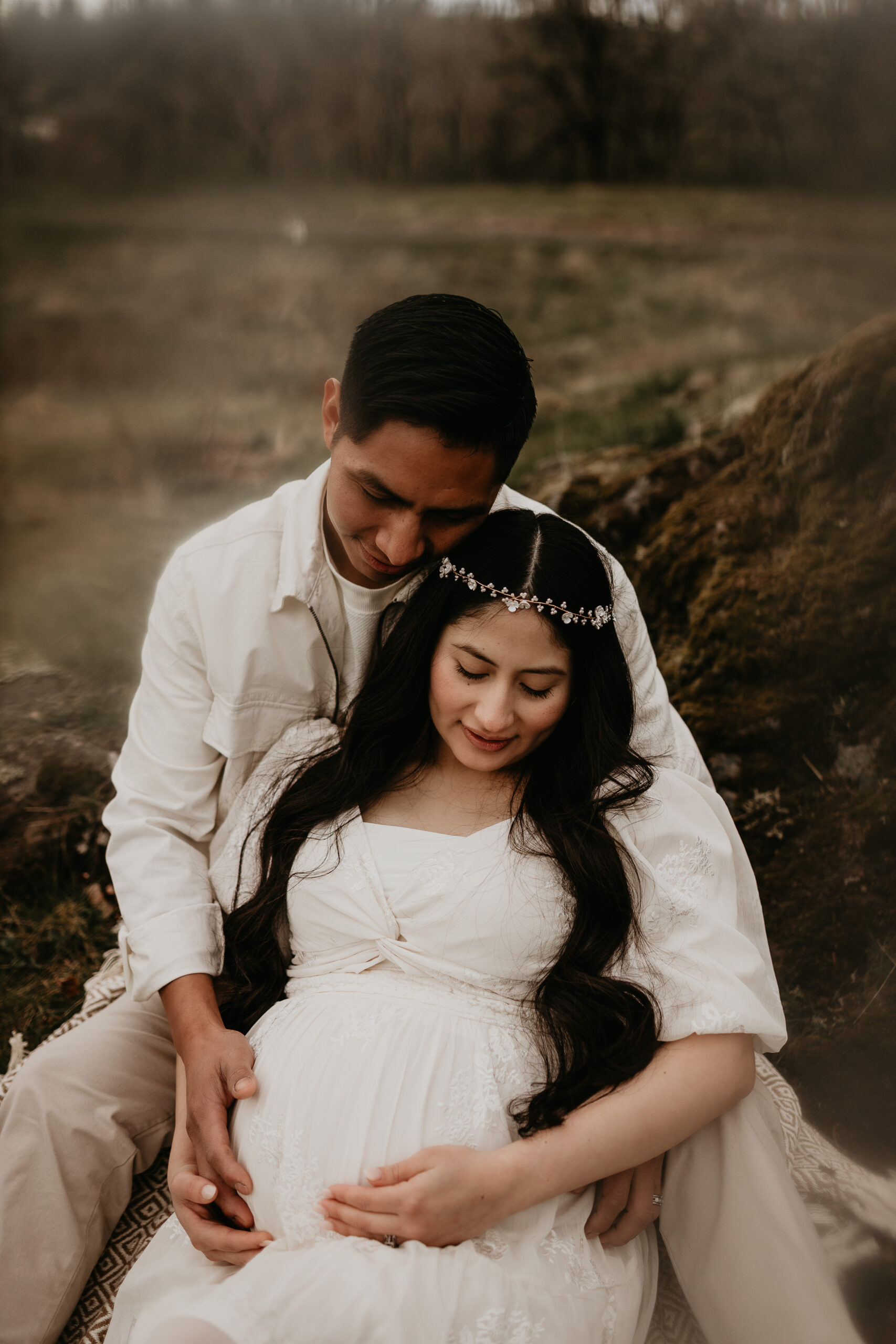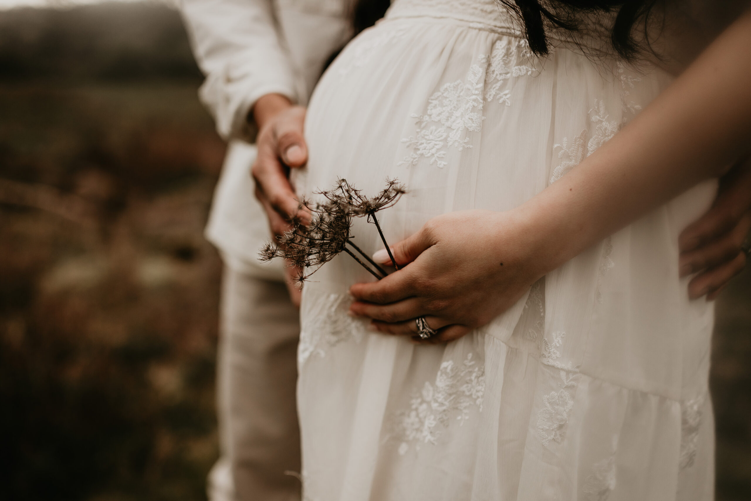 We braved the spring weather this day. And while we always hope and long for the sun, sometimes overcast steals the show too. It truly allows us to move and use every part of our location to the fullest. So please don’t be scared to book those spring sessions. I love how the landscape looks different; the greenery is more intense, and everything is starting to pop up into full bloom–including this gorgeous mama. Ha, see what I did there? Always gotta find a way to bring it back to the session instead of rambling on and on. And I will leave it at that. Because me and my long-windedness can get the better of me. And I definitely don’t want to take away from the awe of this beautiful family and the little love that was growing to join them.