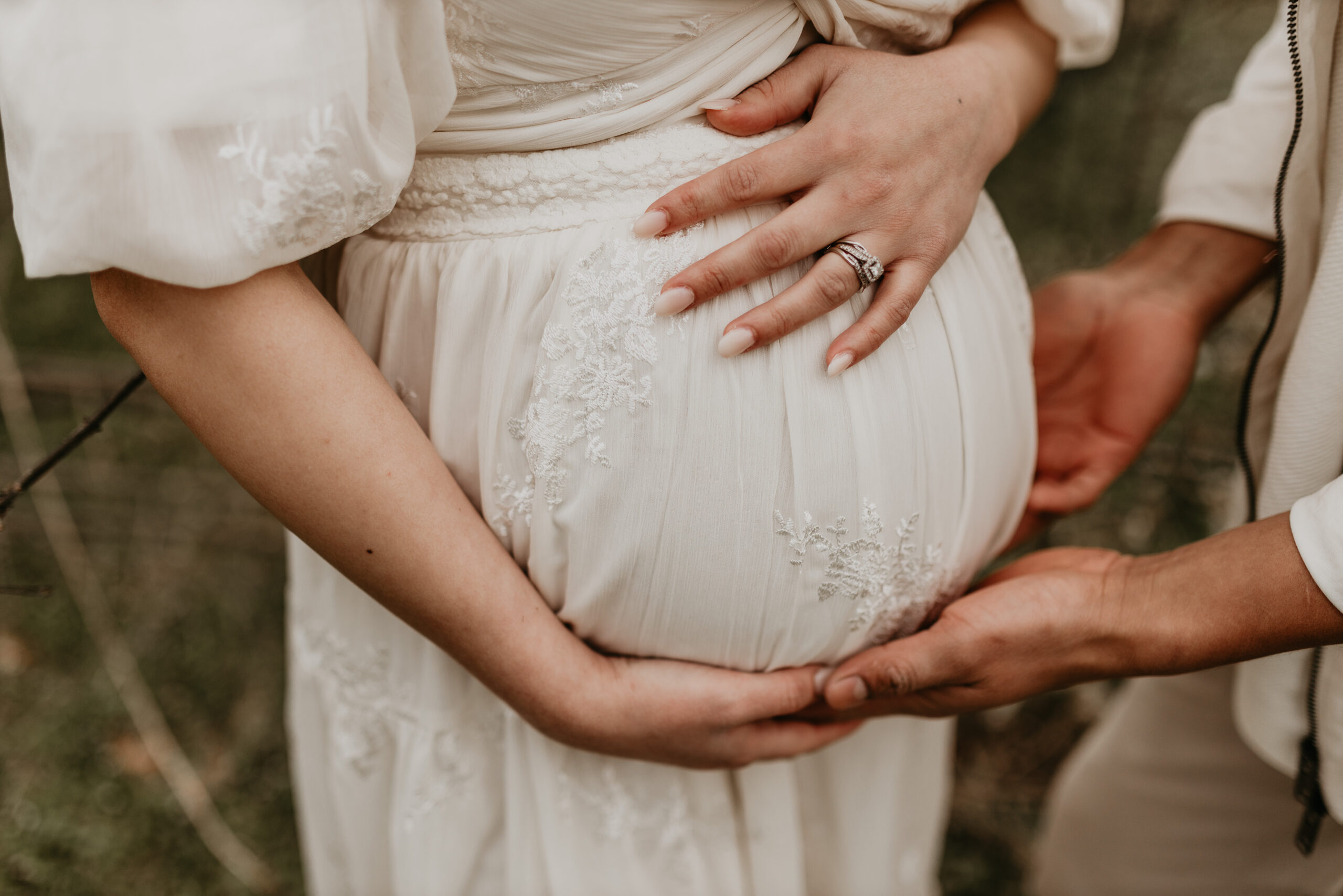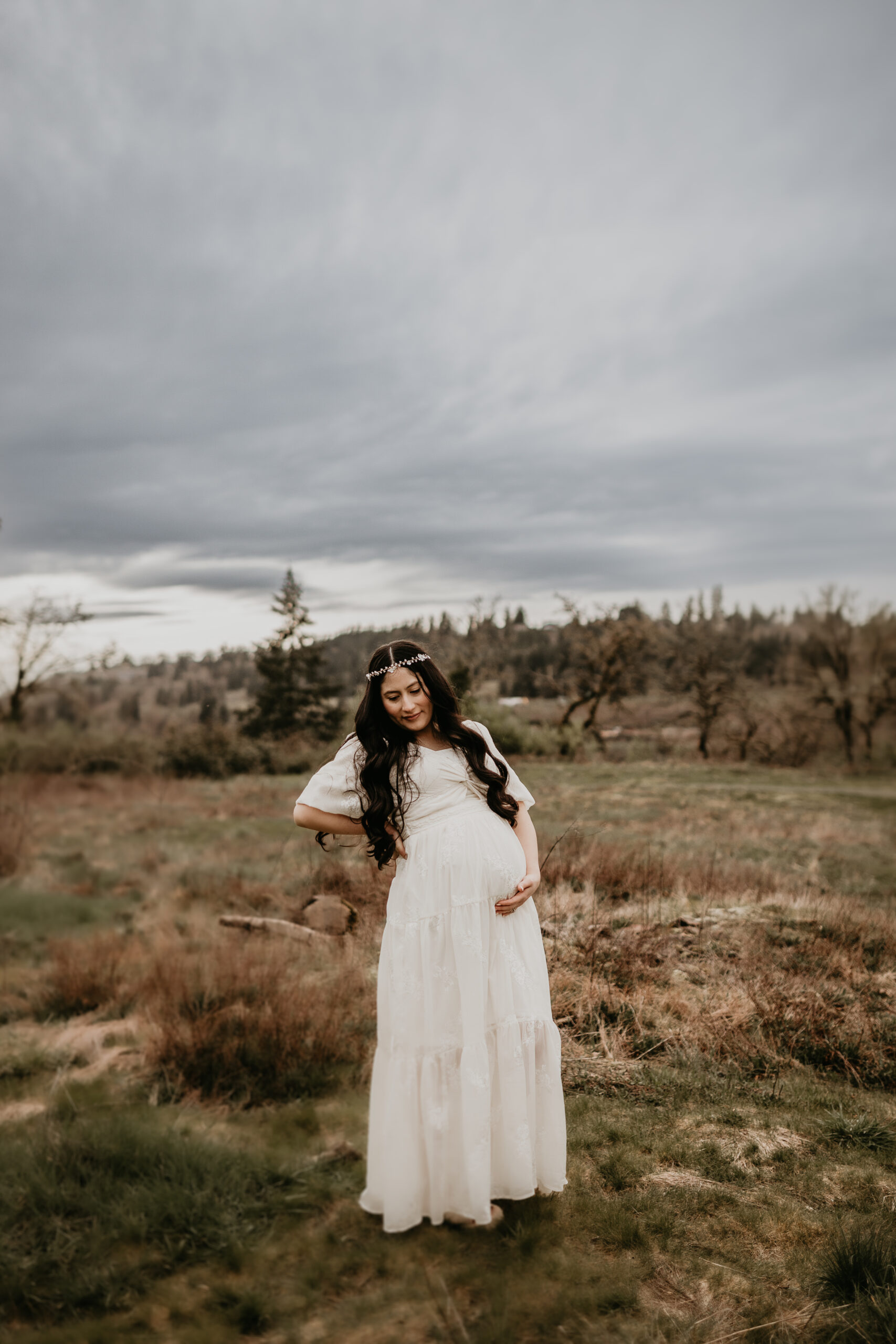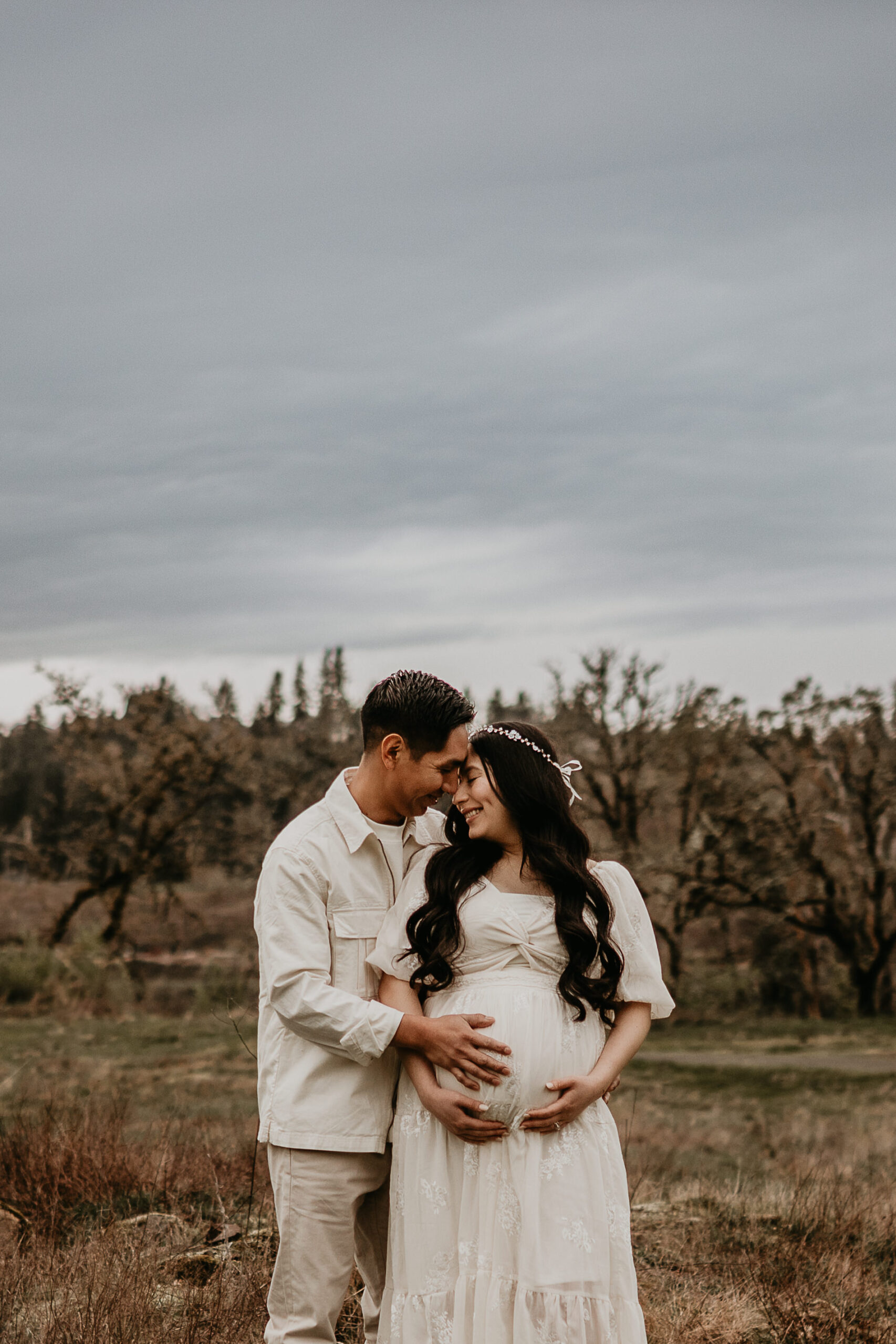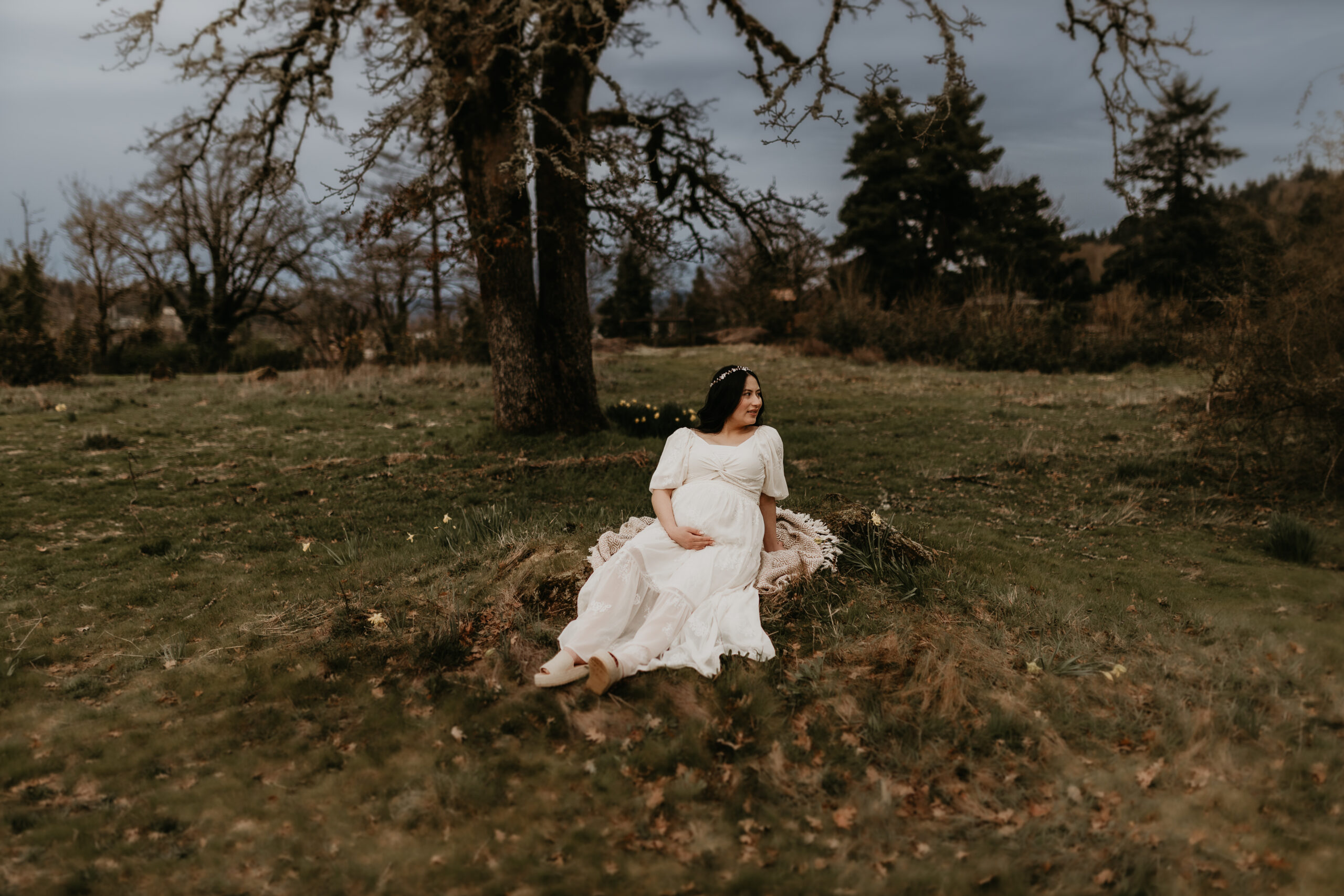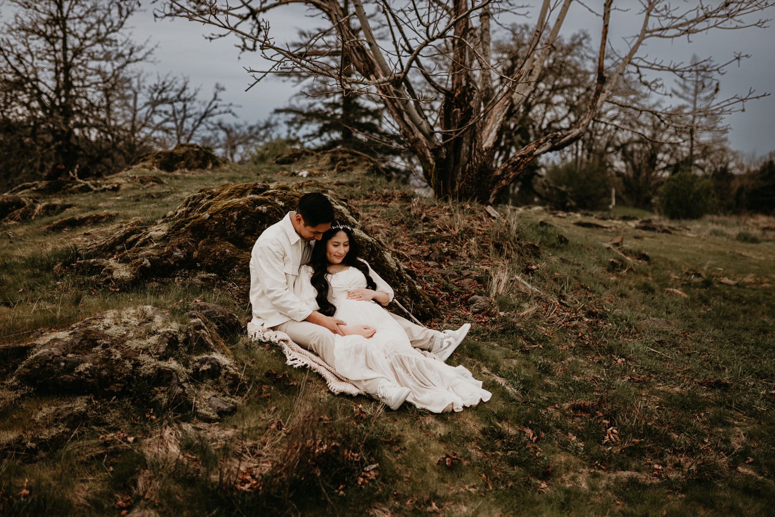 We braved the spring weather this day. And while we always hope and long for the sun, sometimes overcast steals the show too. It truly allows us to move and use every part of our location to the fullest. So please don’t be scared to book those spring sessions. I love how the landscape looks different; the greenery is more intense, and everything is starting to pop up into full bloom–including this gorgeous mama. Ha, see what I did there? Always gotta find a way to bring it back to the session instead of rambling on and on. And I will leave it at that. Because me and my long-windedness can get the better of me. And I definitely don’t want to take away from the awe of this beautiful family and the little love that was growing to join them.