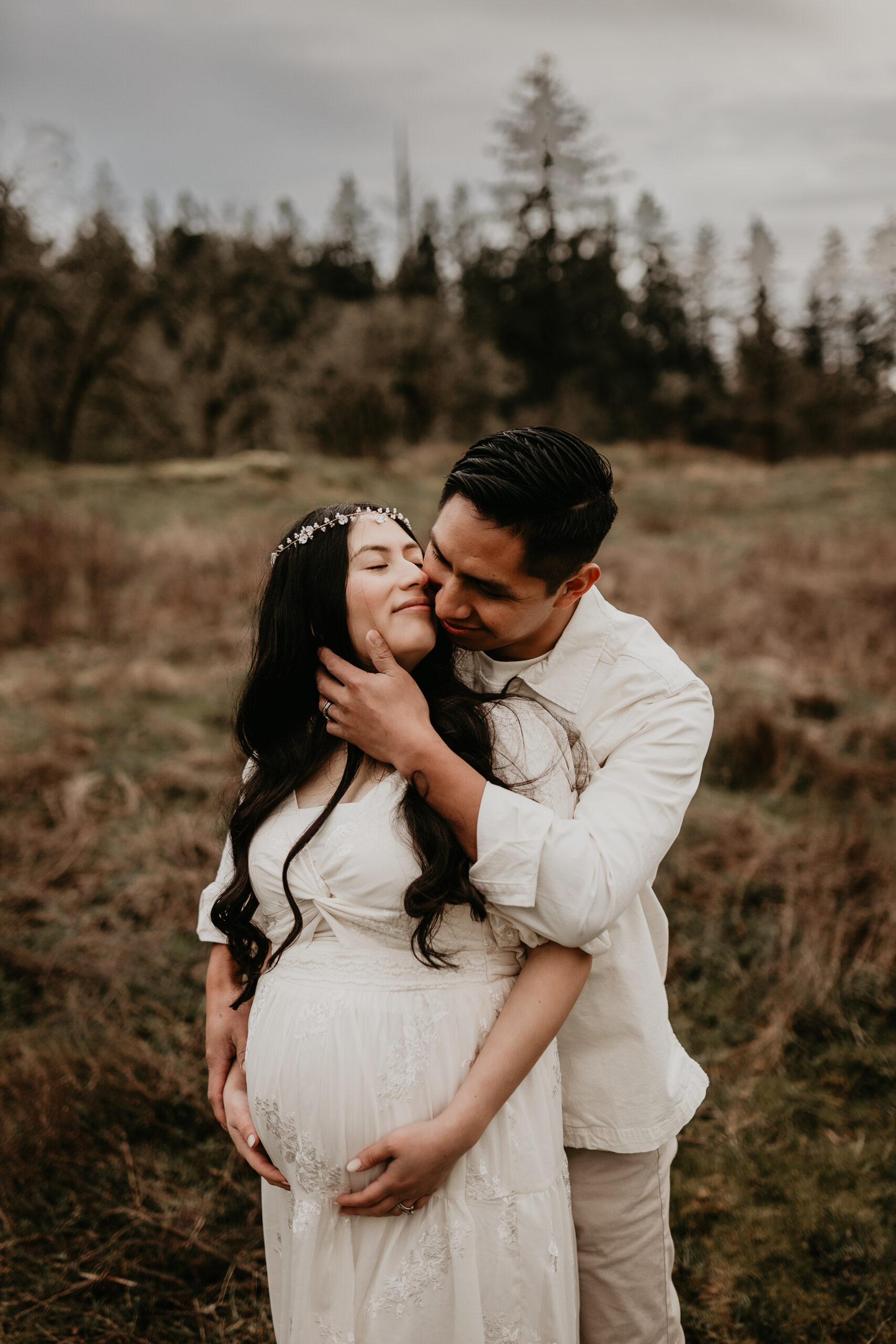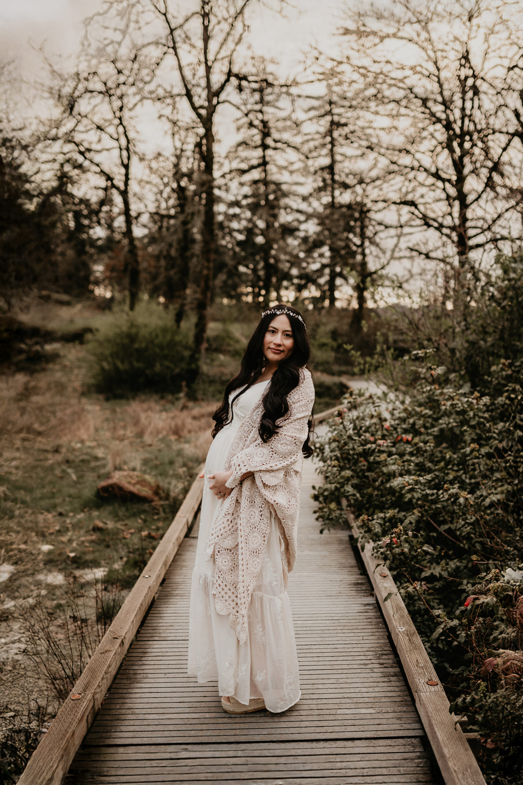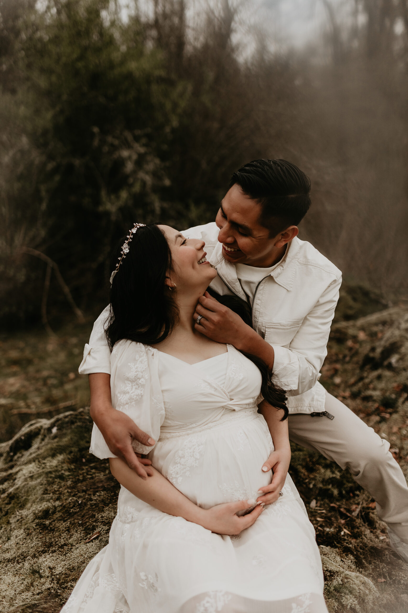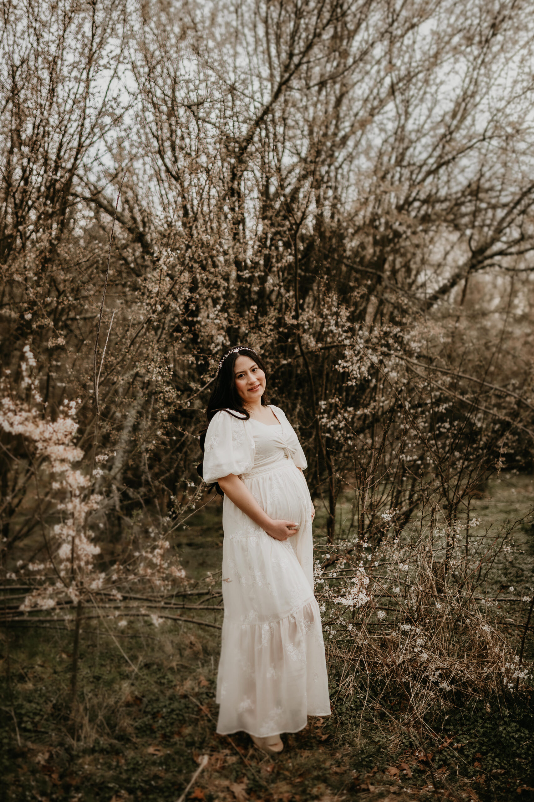 We braved the spring weather this day. And while we always hope and long for the sun, sometimes overcast steals the show too. It truly allows us to move and use every part of our location to the fullest. So please don’t be scared to book those spring sessions. I love how the landscape looks different; the greenery is more intense, and everything is starting to pop up into full bloom–including this gorgeous mama. Ha, see what I did there? Always gotta find a way to bring it back to the session instead of rambling on and on. And I will leave it at that. Because me and my long-windedness can get the better of me. And I definitely don’t want to take away from the awe of this beautiful family and the little love that was growing to join them.