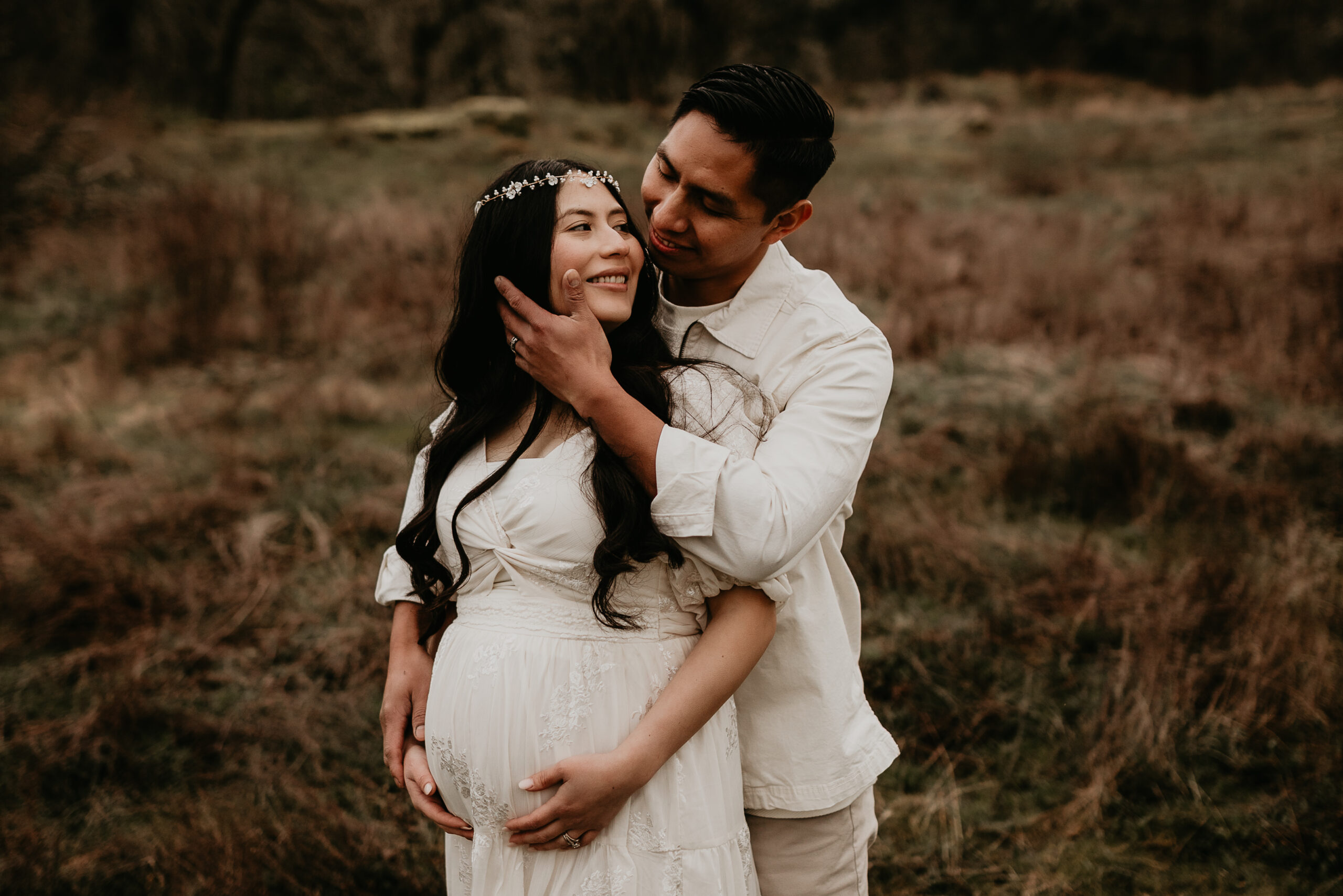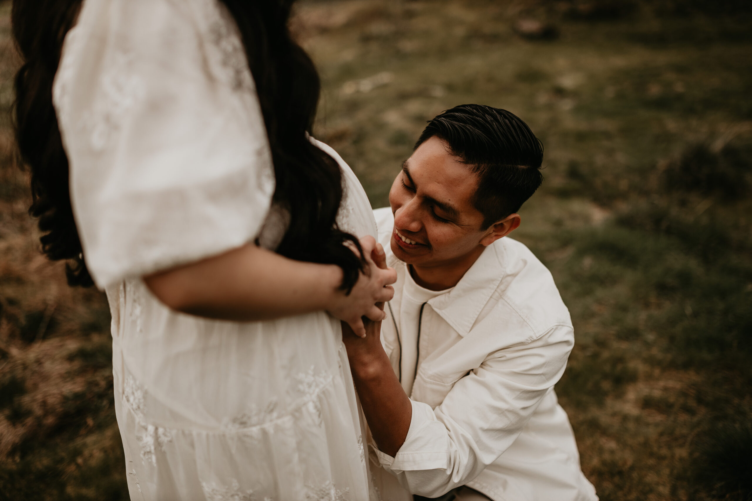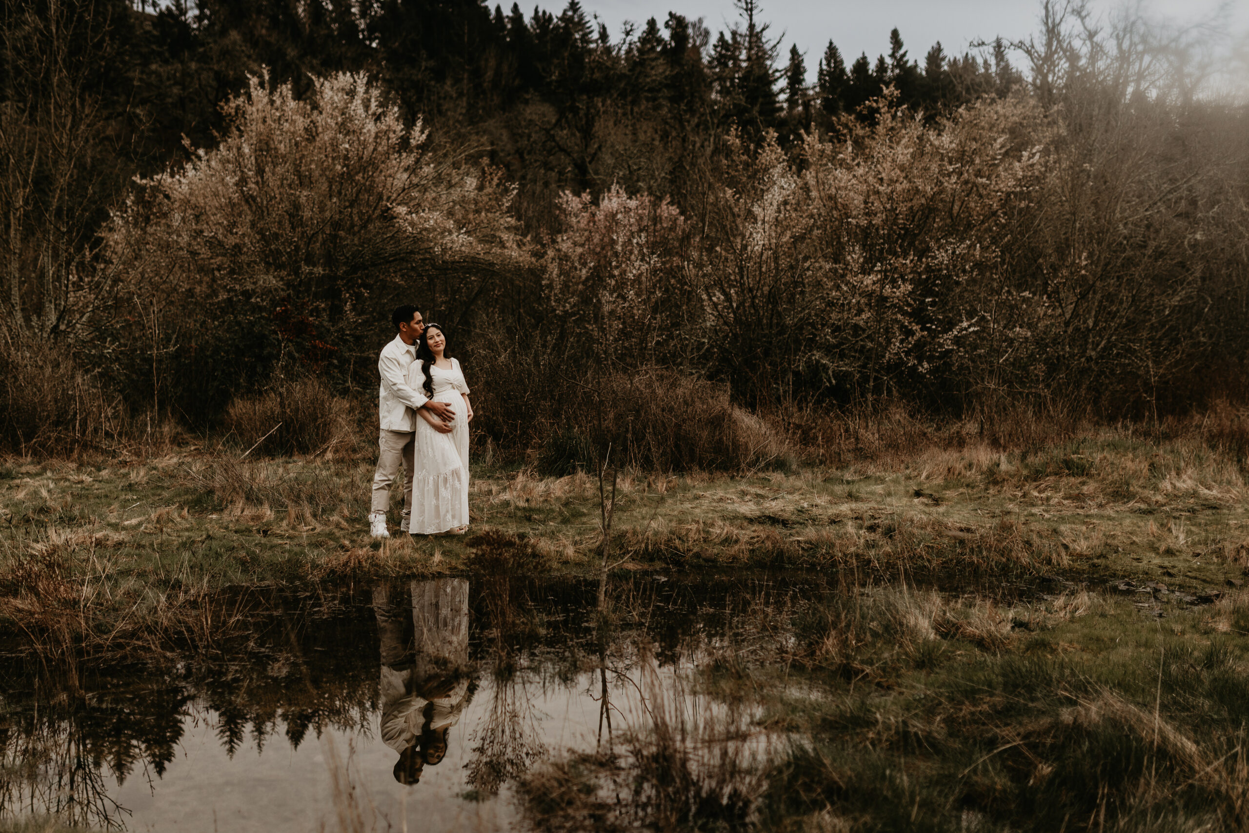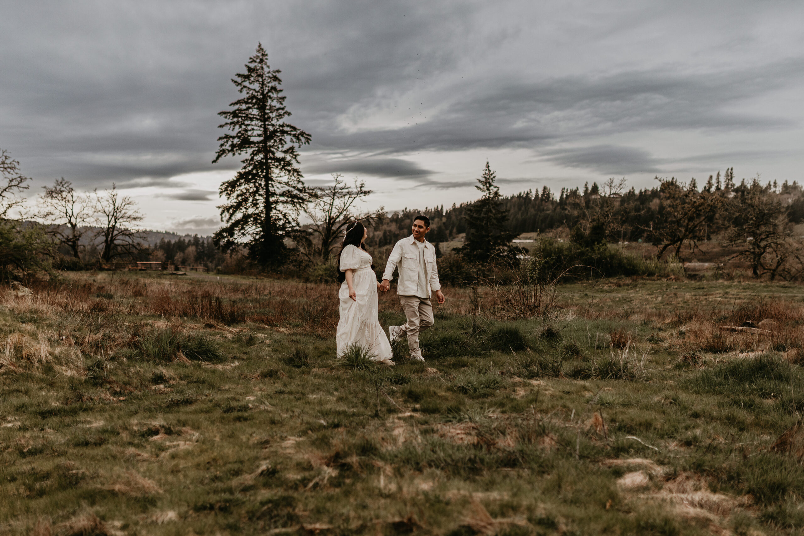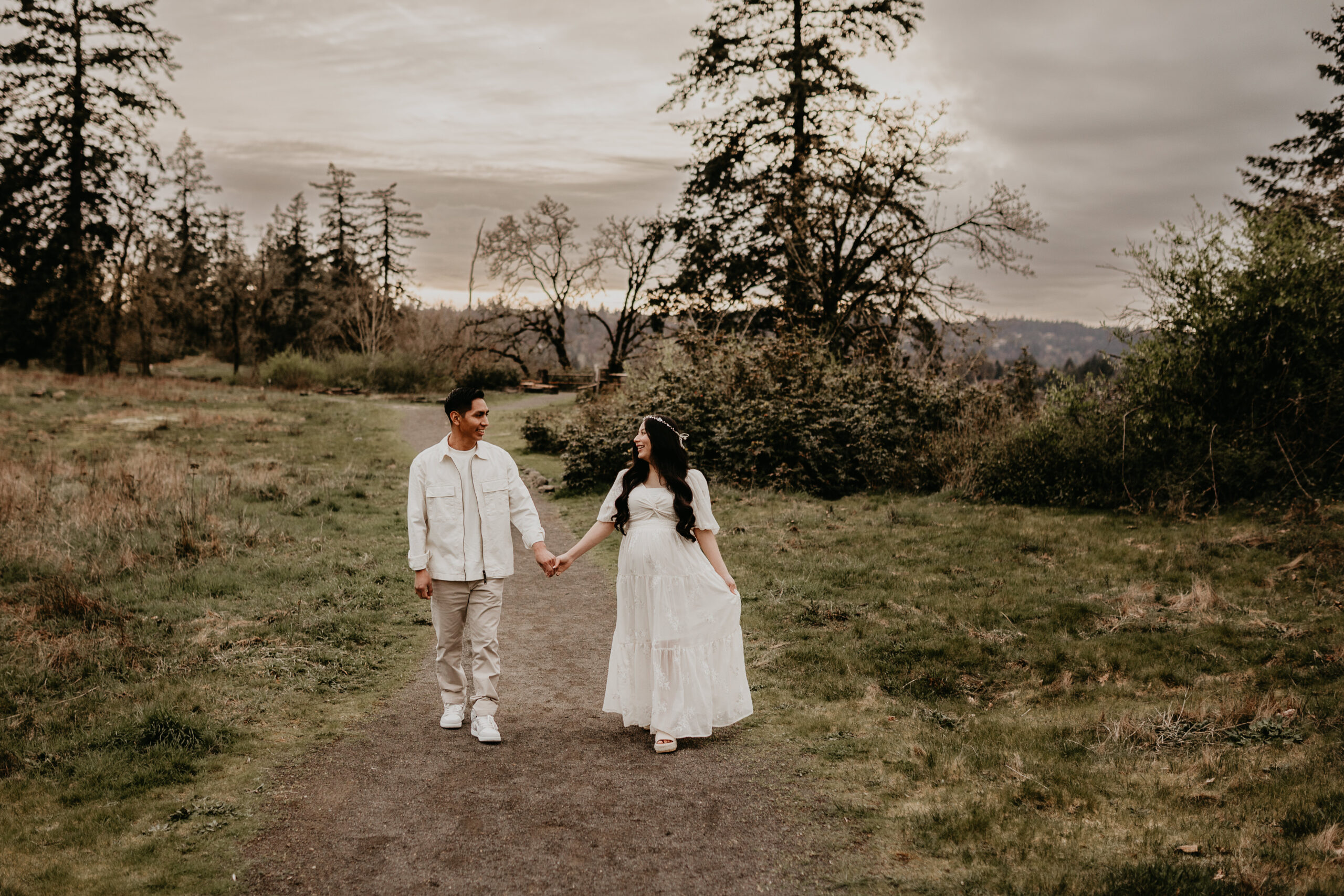 We braved the spring weather this day. And while we always hope and long for the sun, sometimes overcast steals the show too. It truly allows us to move and use every part of our location to the fullest. So please don’t be scared to book those spring sessions. I love how the landscape looks different; the greenery is more intense, and everything is starting to pop up into full bloom–including this gorgeous mama. Ha, see what I did there? Always gotta find a way to bring it back to the session instead of rambling on and on. And I will leave it at that. Because me and my long-windedness can get the better of me. And I definitely don’t want to take away from the awe of this beautiful family and the little love that was growing to join them.
